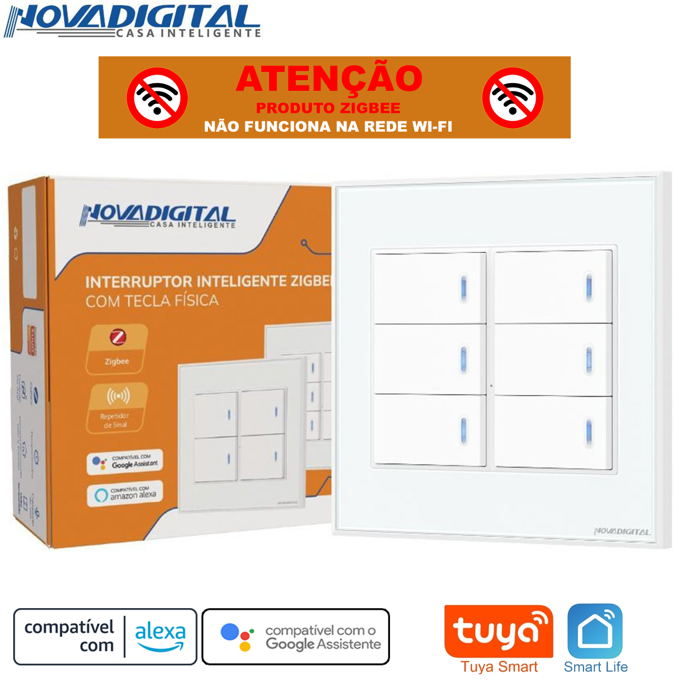 ATENÇÃO! ESTE DISPOSITIVO SÓ FUNCIONA COM UM HUB ZIGBEE NOVA DIGITAL TUYA!
